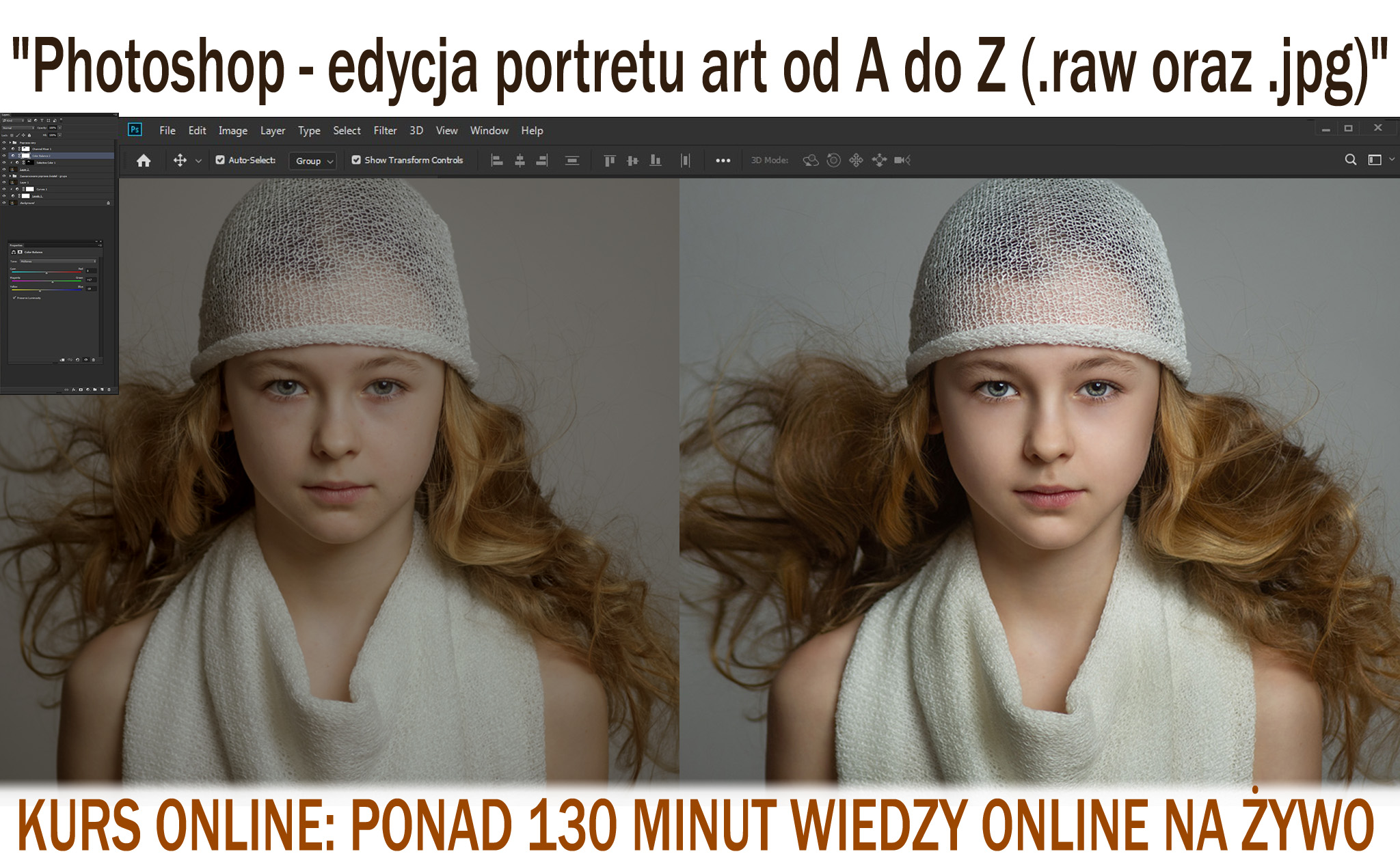 Ponad 130 minut wiedzy online, podczas których Alina skupi się na edycji portretów art. Zobaczysz cały proces edycji zdjęć i portretów art od A do Z. Skupiamy się głównie na programie Photoshop.